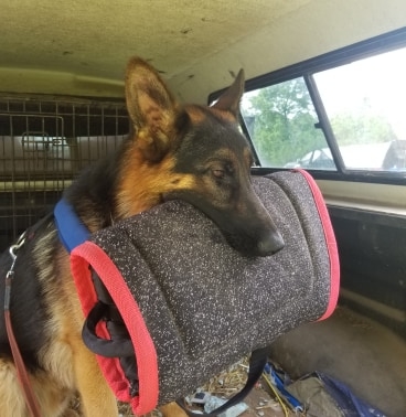 DOB : Fire is a super boy from a breeder in the US out of Karma aus Gerstbrei ans Anuk. He has incredible calm grip and an amazing temperament. He is great with the babies and loves his ball. Forward to the future with this boy and what he will bring to my kennel.
